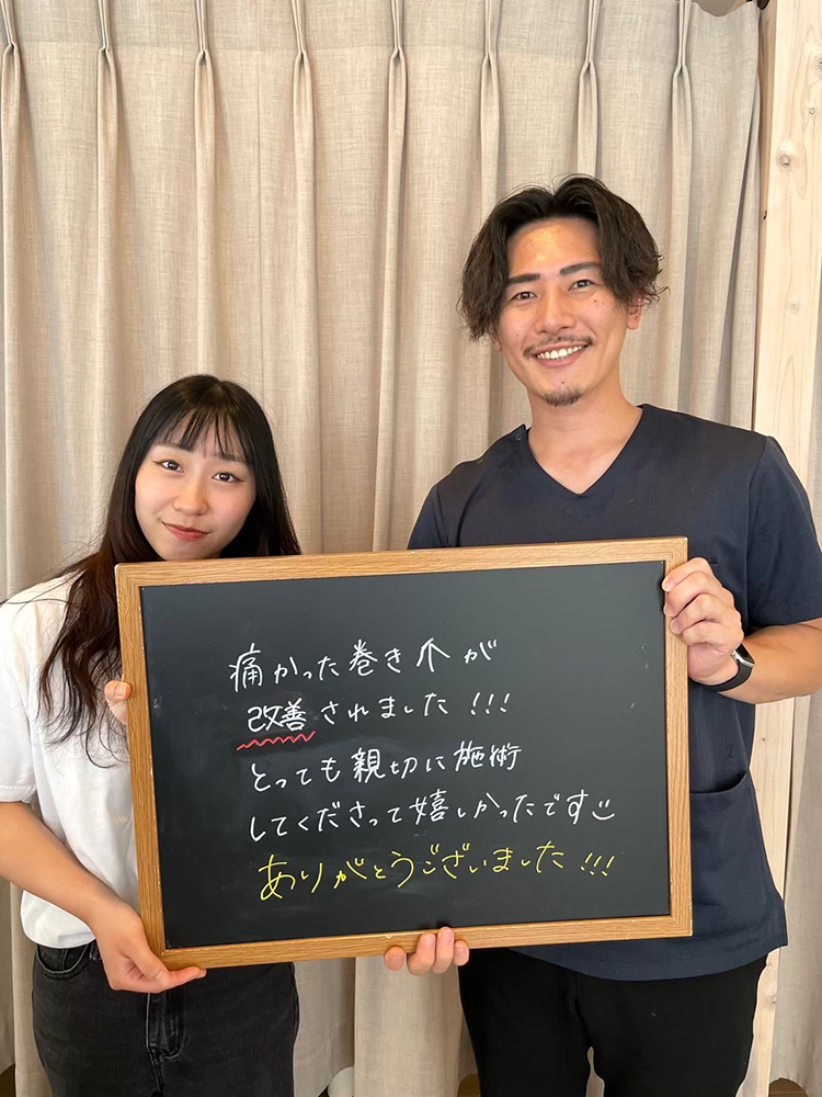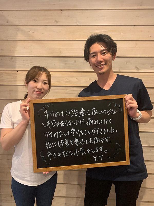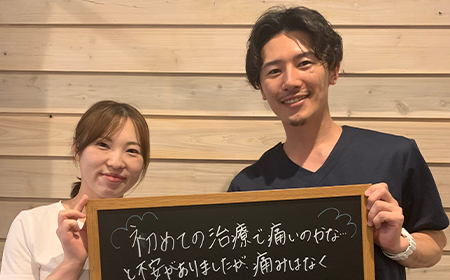 施術も優しく丁寧に行っていただき、とても助かりました。ありがとうございました!