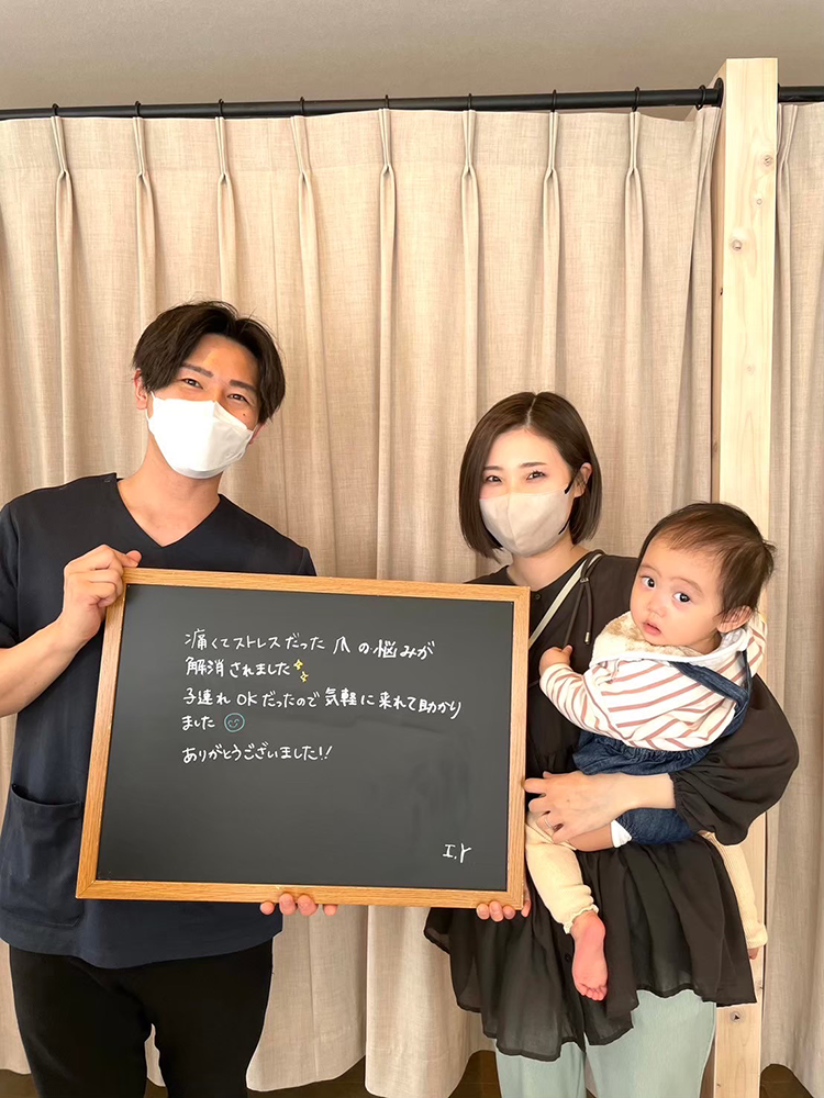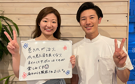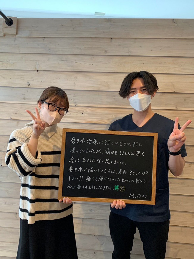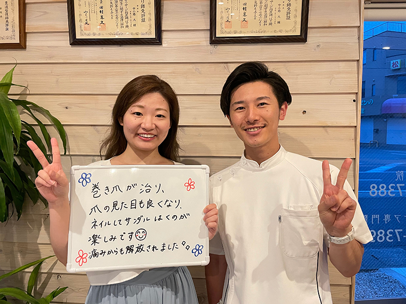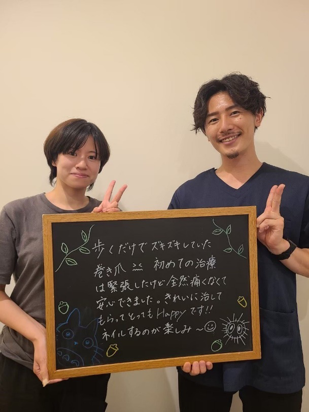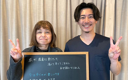 歩くだけでズキズキしていた巻き爪。初めての治療は緊張したけど全然痛くなくて安心しました。