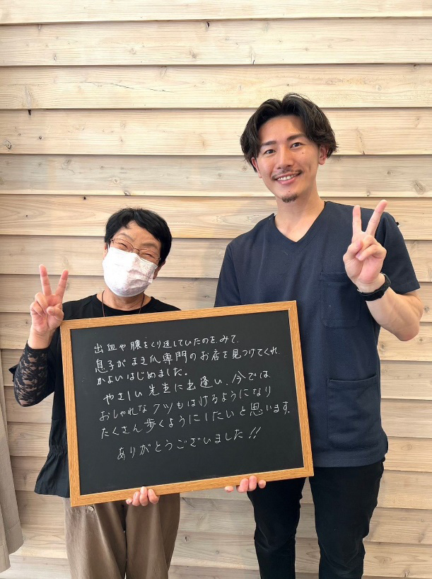 やさしい先生に出逢い、今ではおしゃれなクツも履けるようになり、たくさん歩くようにしたいと思います。