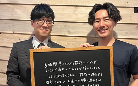 こちらで施術してもらい、親指の痛みから開放されていつも通りの日常に戻れました。