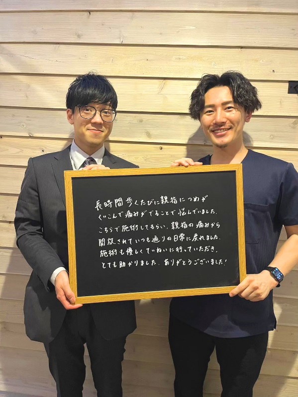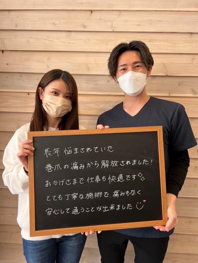 長年悩まされていた巻爪の痛みから解放されました!おかげさまで仕事も快適です!