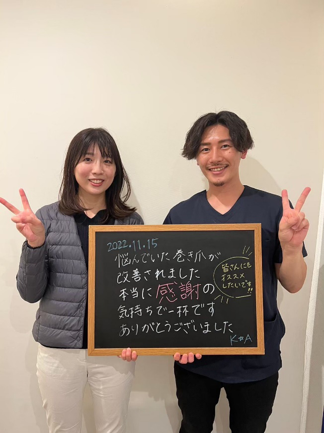 施術も全然痛みもないので巻き爪に悩みのある方は是非治してほしいです!