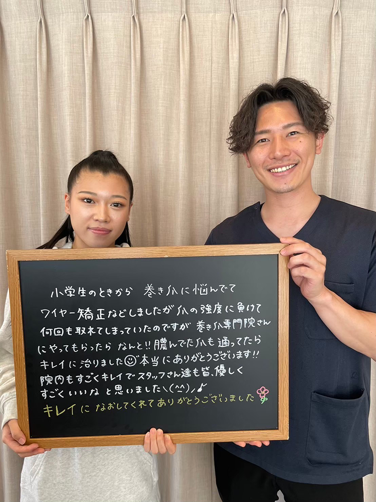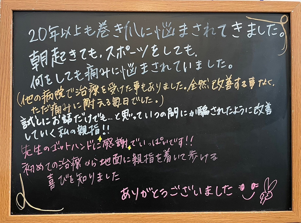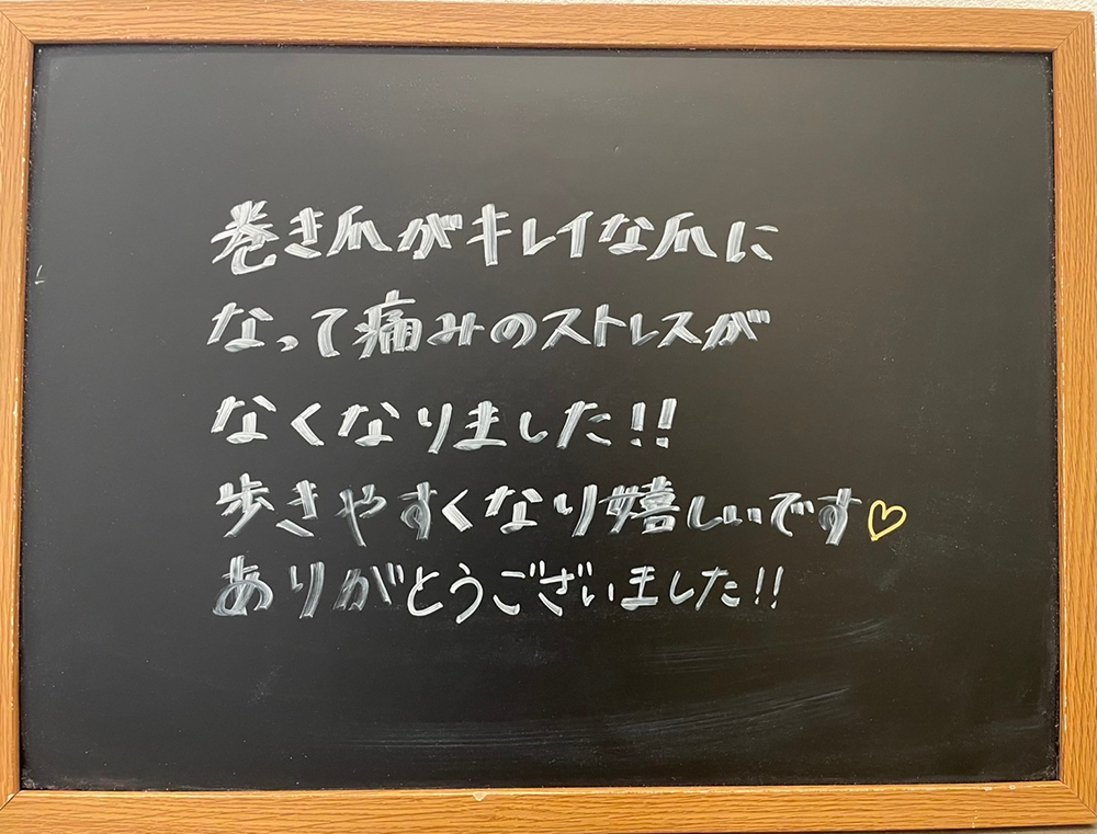 長年悩んでいた巻爪が改善されてホントに助かりました。